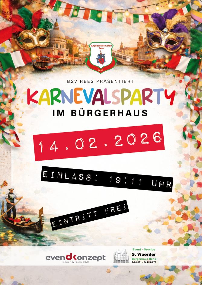 Am 14.02.2026 findet ab 19:11 Uhr unsere traditionelle Karnevalsparty statt.
